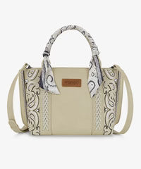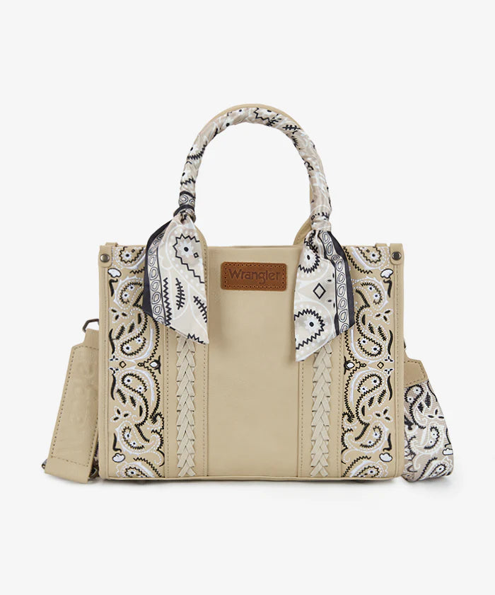 The Wrangler Western Paisley Tote Bag combines style and functionality in a structured design with braided details and decorative scarf handles. Its vintage Western aesthetic delivers timeless paisley patterns and boho charm.