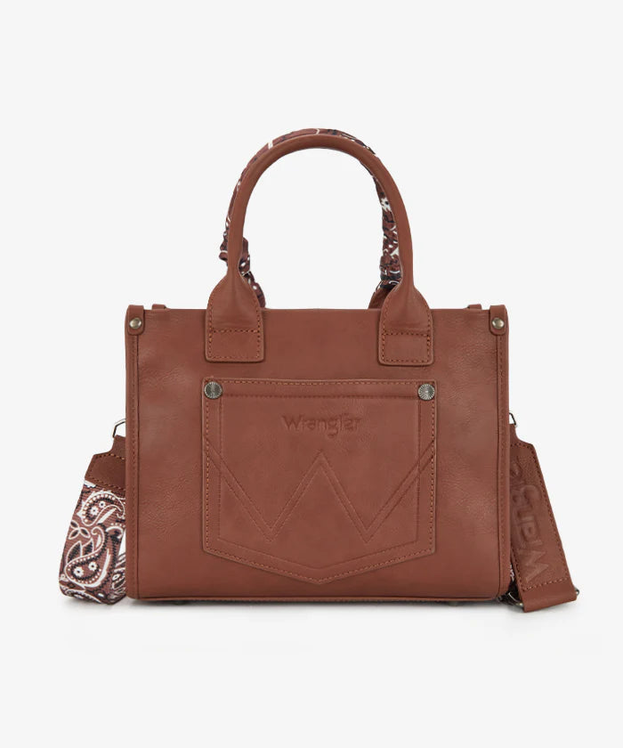Crafted from faux leather with paisley accents, this Wrangler tote bag is perfect for everyday use. With a detachable shoulder strap, it can be carried by hand or worn on the shoulder, making this paisley tote bag good for every occasion.