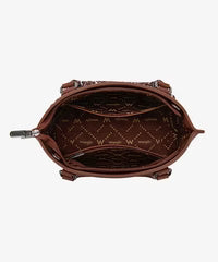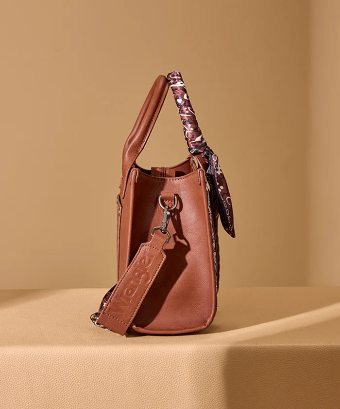 The Wrangler Braided Paisley Handbag combines timeless Western style with practical everyday design. Crafted from faux leather, this structured handbag features braided side detailing and paisley-pattern accents that highlight its classic country-inspired character.